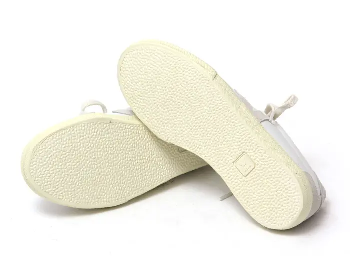 シューレースはオーガニックコットン。スニーカにマッチしたナチュラルな色味で、粗目の分、結び目がほどけにくい特徴を持っています。アッパーはオーガニックトレースレザーで、パネルにはレザーとスエードがバランスよく配置され、大人な抜け感を演出します。