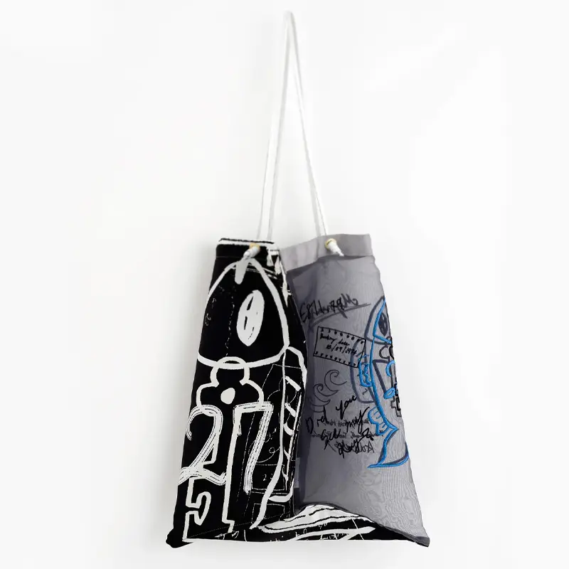 manipuri マニプリ オーガンジー プリント トート L 魚/BLACK
