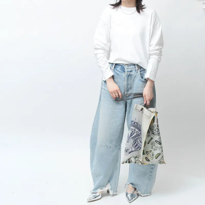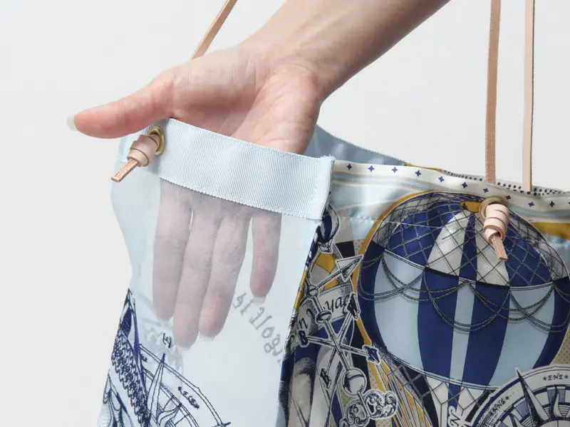 異なる素材が織りなすコントラストが、角度によって異なる美しさを生み出します。シルクが醸し出す高級感に、シアーの遊び心が加わることで、気品と抜け感を兼ね備えた洗練のデザインに仕上げました。中のアイテムがさりげなく見えることでコーディネートにスタイリッシュなアクセントを加えることが出来ます。