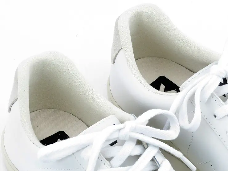 ブランドロゴが施された踵部分の素材