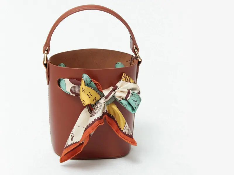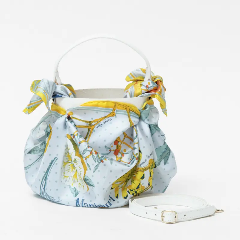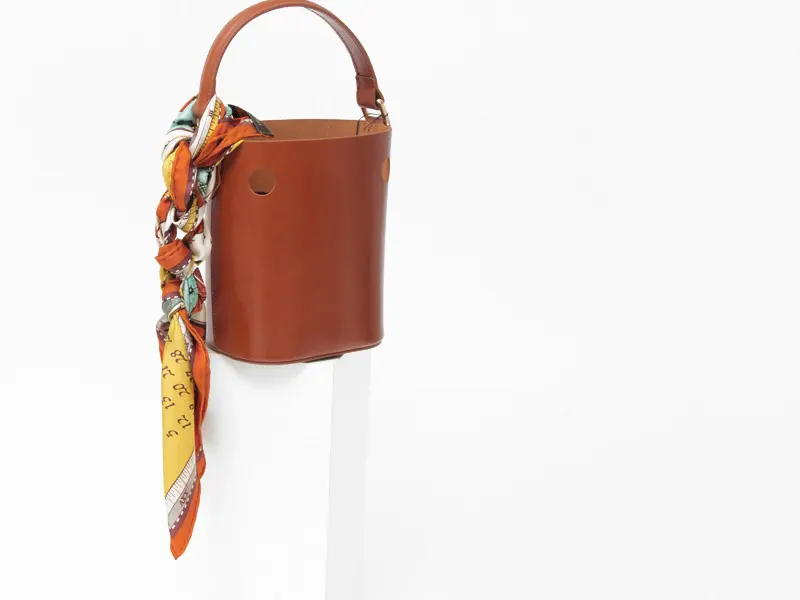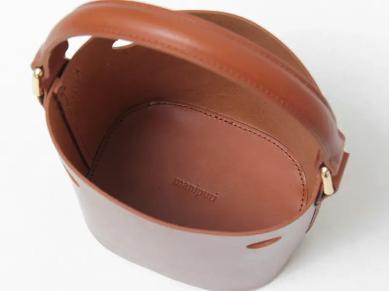 洗練されたデザインで、シンプルながらも個性的な魅力の"manipuri/マニプリ"のバケツ型のレザーバッグ。スカーフを巻いたり、結んだりしてアレンジができる仕様になっていて人と被らない自分だけのデザインを楽しむことが出来ます。スカーフは首に巻いたりしてコーデの一部としてもお使い頂けます。