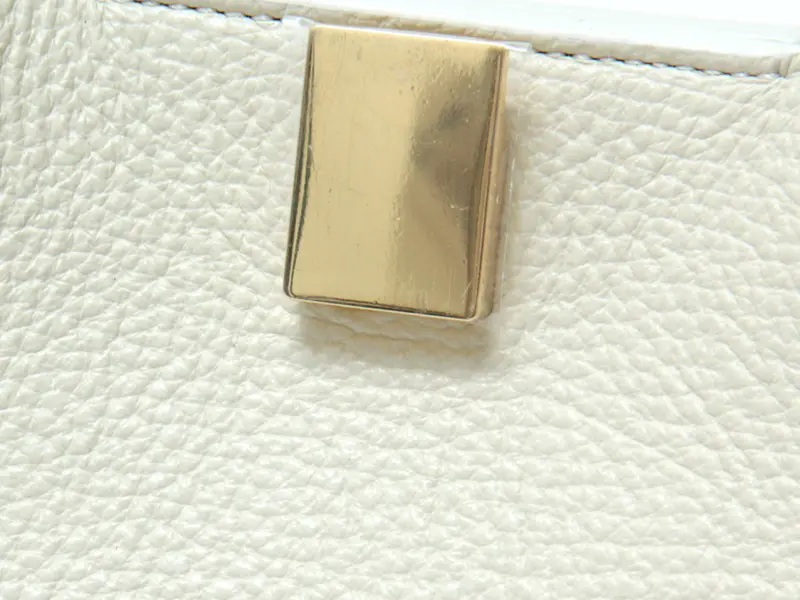 ほんのり光沢のあるシボの効いた牛革に高級感漂うフロントのゴールド金具が施されており、上質感が漂います。傷が目立ちにくく、レザーの中でも扱いやすい素材は、デイリーバッグに最適な素材です。