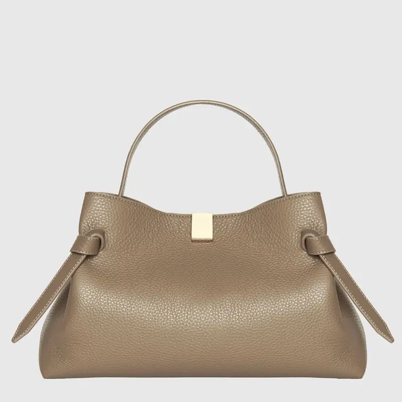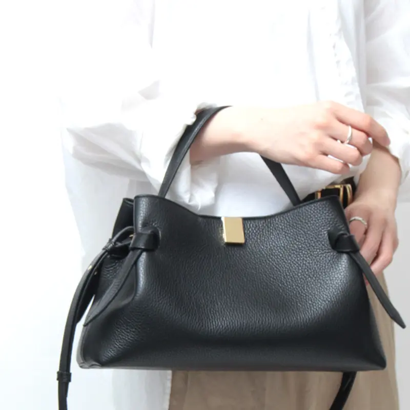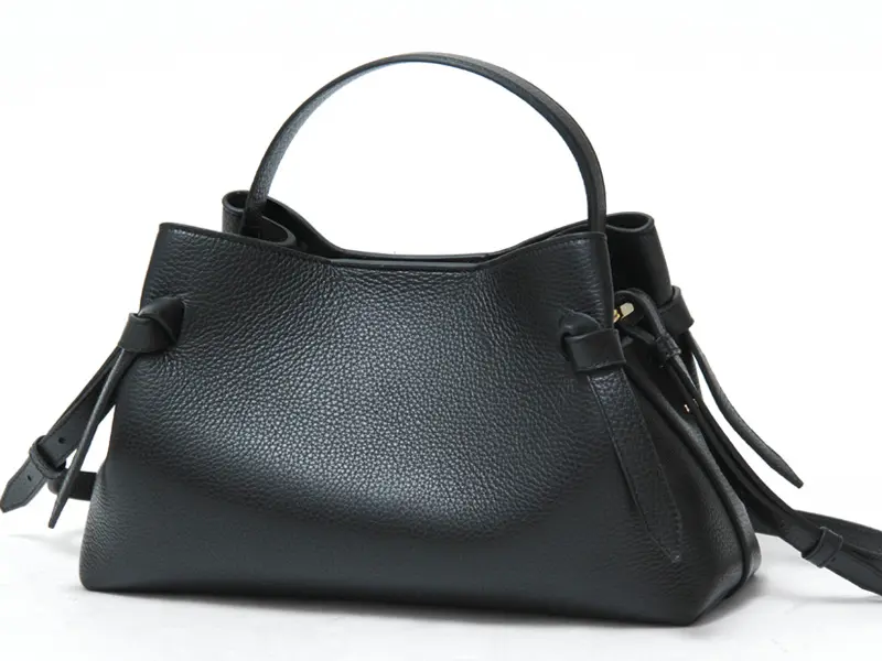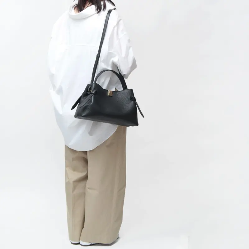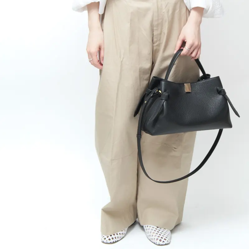 まるでリボンのようなサイドの結び目(ノット)が、シックなデザインに洗練された華やかさをプラス。ショルダーストラップはギボシ仕様で、取り外しや長さ調節が可能。お好みの長さに調節していただけます。通勤やショッピング、旅行など幅広いシーンで便利にお使いいただけます。