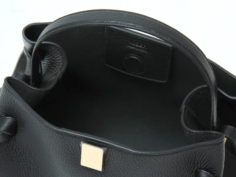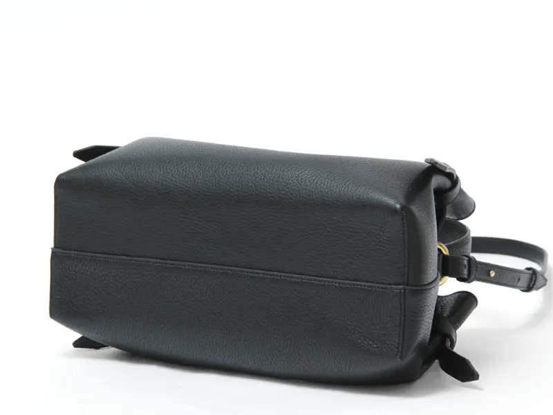 ほんのり光沢のあるシボの効いた牛革に高級感漂うフロントのゴールド金具が施されており、上質感が漂います。傷が目立ちにくく、レザーの中でも扱いやすい素材は、デイリーバッグに最適な素材です。
