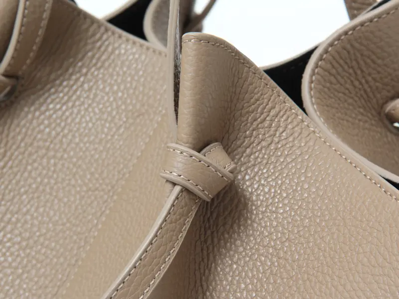 ほんのり光沢のあるシボの効いた牛革は上質感が漂います。凸凹としたレザーの表情は趣があり、傷が目立ちにくく、レザーの中でも扱いやすい素材は、デイリーバッグに最適な素材です。