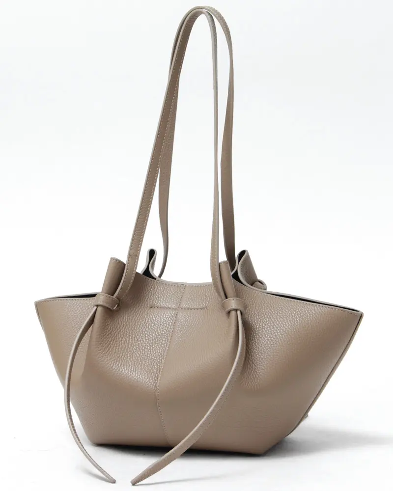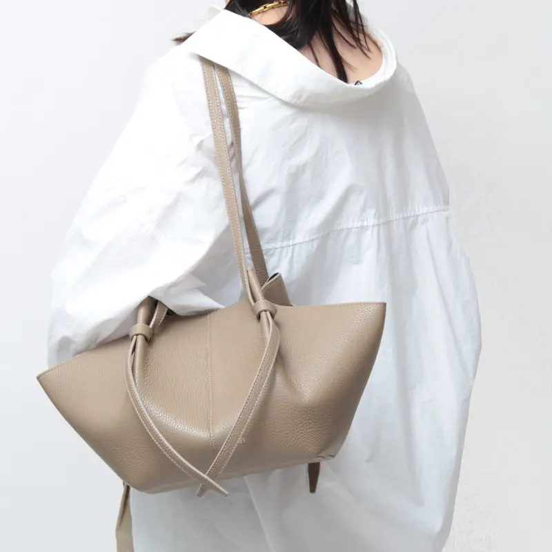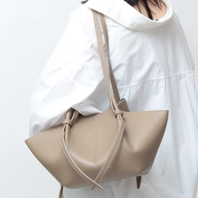 ハンドルの結び目(ノット)がまるでリボンのように優しく揺れ、シンプルなデザインに女性らしい柔らかさをプラスした“yuzefi /ユゼフィ”の「MOCHI」。ショルダーの長さは結び目で調整可能で、お好みの長さでお持ちいただけます。マチも広く500mlのペットボトルが収納可能で、オフィスからデイリー使いまで幅広くお使い頂けます。