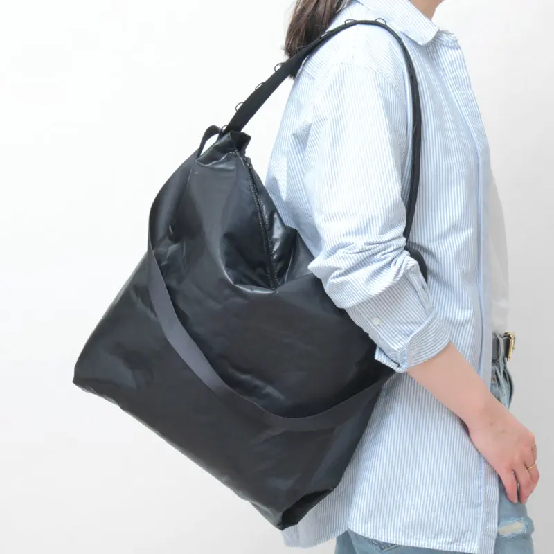 滑らかな光沢のある綿入りボンディングクロスを使用した"POMTATA ポンタタ"のショルダーバッグ。2本ベルトで肩掛け・斜め掛けが可能。短いベルトのループにキーケースなども掛けられ、弱撥水加工で少しの雨も安心。A4サイズ対応で収納力も抜群です。シンプルでどんなコーディネートにもぴったりで、幅広いシーンで活躍します。