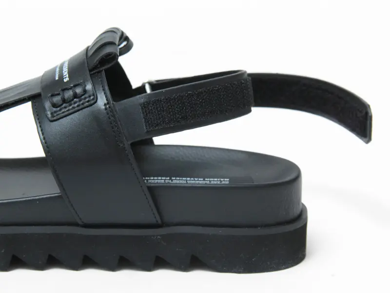 ベルトサイド部分にブランドのイニシャルがあしらわれたバックストラップ。お好きなフィット感に調節ができるベルクロタイプです。クッション性のあるインソールは歩行時の衝撃を和らげ、優しい履き心地です。