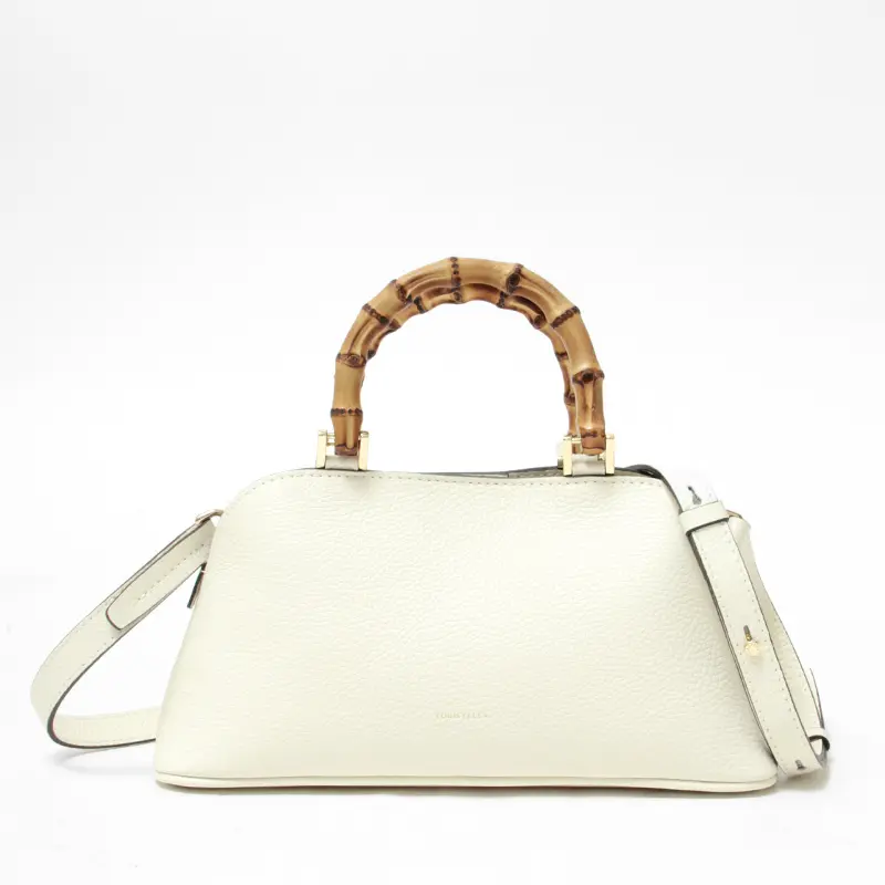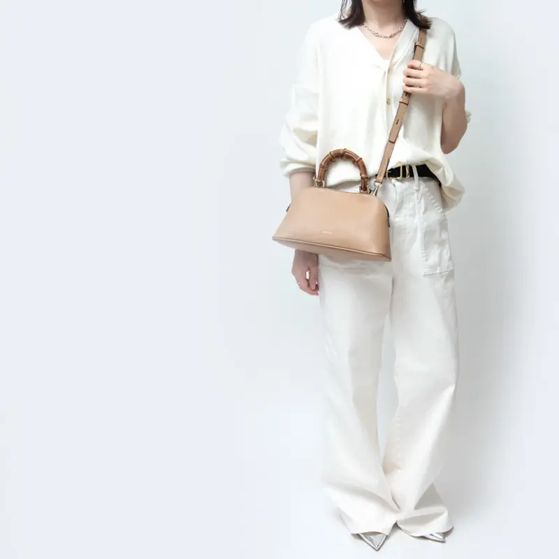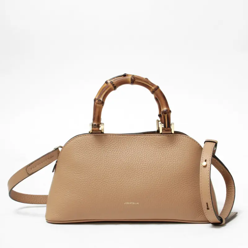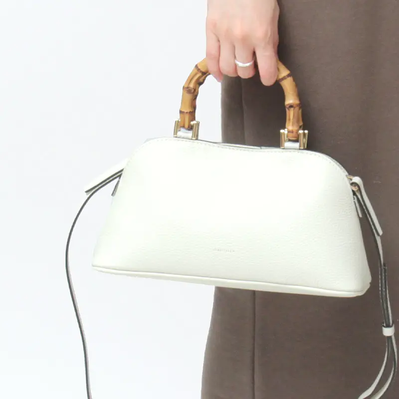 美しいシルエットにバンブーハンドルとレザーが上品な”LORISTELLA ロリステッラ”のハンドバッグ。 バンブーハンドルがアクセントになり、品よくお持ちいただける大人なミニバッグです。長財布などの必需品が収まるコンパクトなサイズ感と、斜めがけ可能なショルダーストラップ付きの2way仕様。カジュアルにもエレガントにも合わせやすく、ショッピングやお出かけにも重宝します。