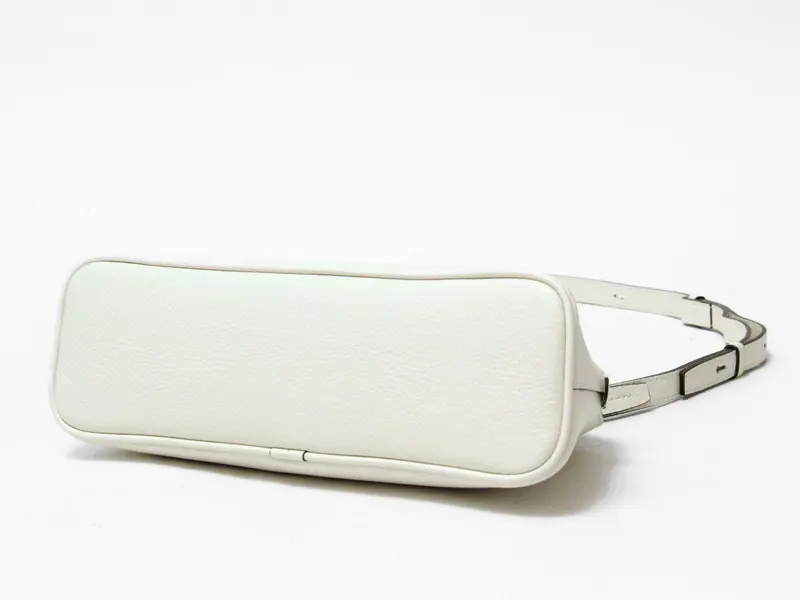 開閉はマグネット仕様。長財布・眼鏡ケースなどがコンパクト収まるサイズ感です。背面内側にファスナーポケットが1つあり、リップやICカードなどの小物の収納にも困りません。