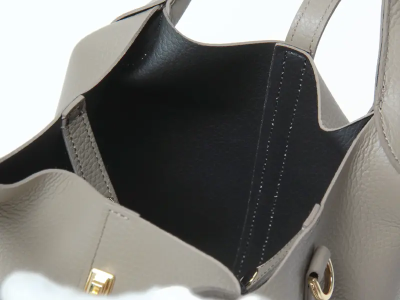 素材には、美しいシボの型押しを施した上質なイタリアンレザーをセレクト。 キメの細かなシボ加工により傷が目立ちにくく、日常使いに嬉しい耐久性を備えています。 裏地をあえて排し、内側にカラーをのせたダブルフェイス仕上げにすることで、 レザーバッグとは思えないほどの軽やかさを実現しました。 機能性と上品な美しさを兼ね備えた、こだわりの素材感をお楽しみください。