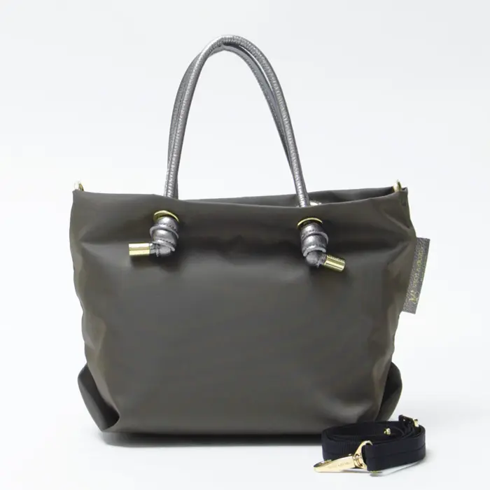 VIOLAd'ORO ヴィオラドーロ BIANCA 2way ナイロン トートバッグ カーキ/シルバー