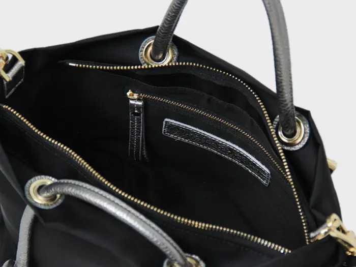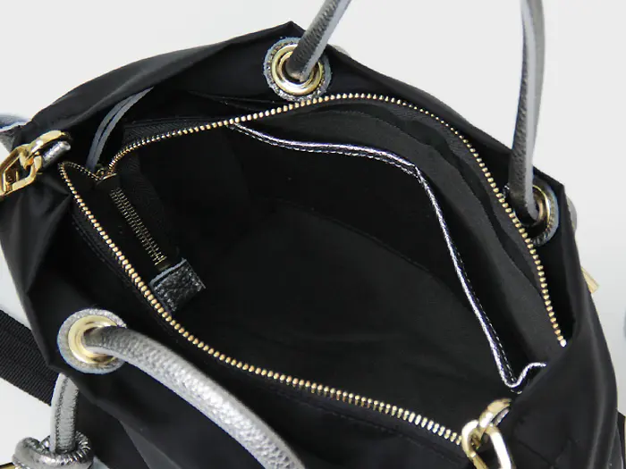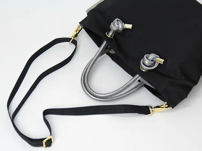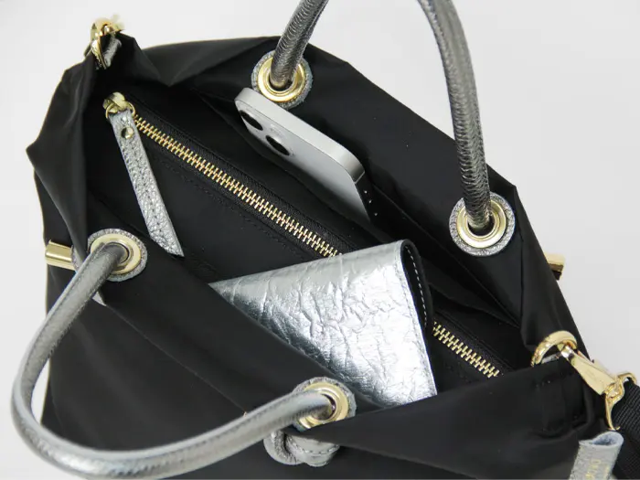 VIOLAd'ORO ヴィオラドーロ BIANCA 2way ナイロン トートバッグ ブラック/シルバー