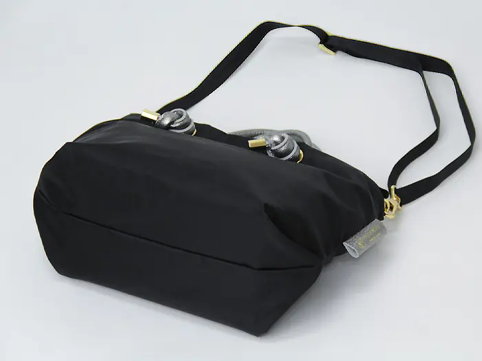 ほんのり光沢感のあるナイロン素材は柔らかく、くしゅっとした表情が軽やかさとこなれた雰囲気を演出します。レザーとのカラーのコントラストが美しく、シンプルながらもコーディネートに華やかさをプラスします。弱撥水ナイロンなので、少々の雨にも対応できます。