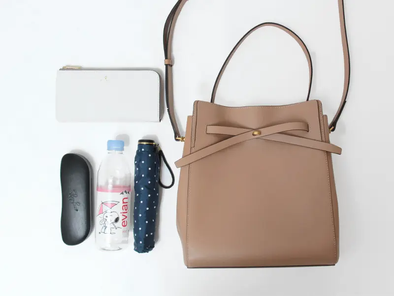 長財布などの必需品に加えて500mlペットボトル、日傘なども入る収納力がポイント。サイズがちょうど良く、バランスの取れた絶妙な大きさが魅力的です。
