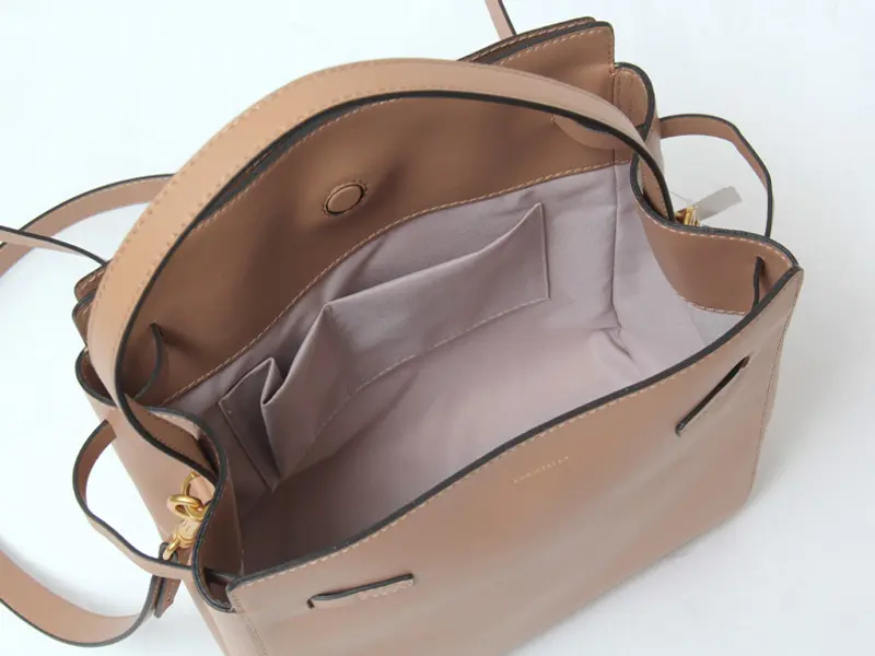 開閉はマグネット仕様。荷物の出し入れがストレスフリーです。背面内側にファスナーポケット1つ、正面内側にオープンポケットが2つが備わっています。