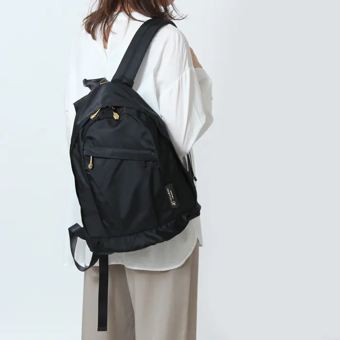 ナイロンの光沢感やすっきりとしたシルエット、ゴールドの金具使いが上品な"VIOLAd'ORO ヴィオラドーロ"のリュック。カジュアルでアクティブな印象のリュックサックも女性らしく、きれいめにも合うのでお仕事スタイルにもぴったりです。A4サイズも収まる大容量で、通勤バッグからマザーズバッグ、旅行など幅広いシーンに最適です。
