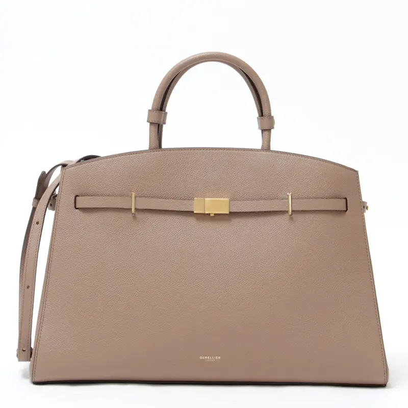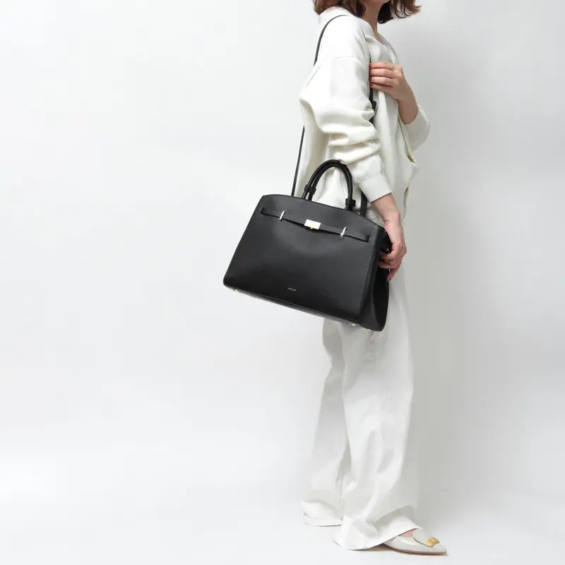 シンプルでスッキリとした力強いシルエットながら、湾曲したトップエッジが女性らしさを添える"DEMELLIER デメリエー"のトートバッグ。キャリアシーンに活躍するA4サイズ対応で、荷物に合わせてマチ幅を変えられる機能性も魅力。フロントのゴールドロックがアクセントとなり、毎日のビジネススタイルを格上げしてくれます。