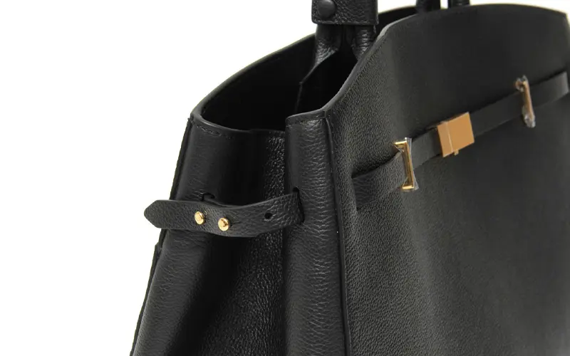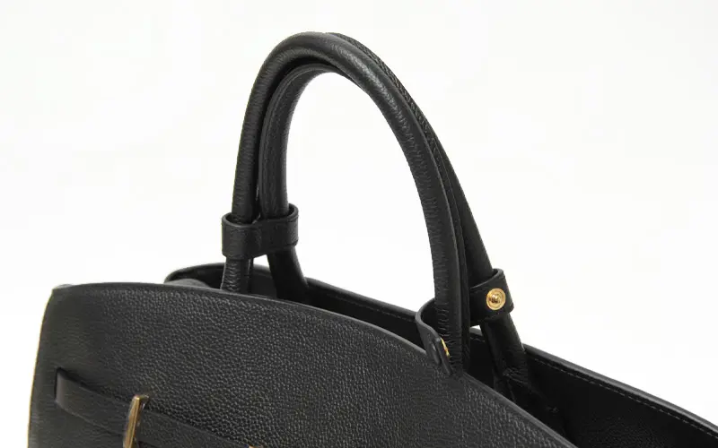 本体には厚みがありながらもソフトな質感が特徴のスモールグレインカウハイドレザーを採用。イタリアの皮なめし工場から独占的に調達した、EU規制に準拠した最高品質の本革を使用し、熟練職人の手で丁寧に仕上げられています。しっかりとしたレザーなので安定感があり、荷物を入れてもバッグの形を崩さず綺麗なシルエットのままお持ちいただけます。
