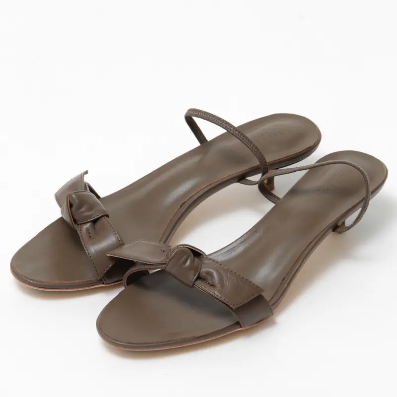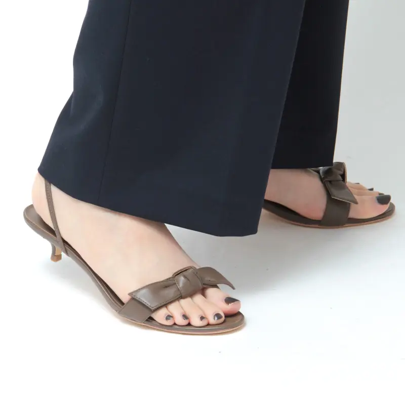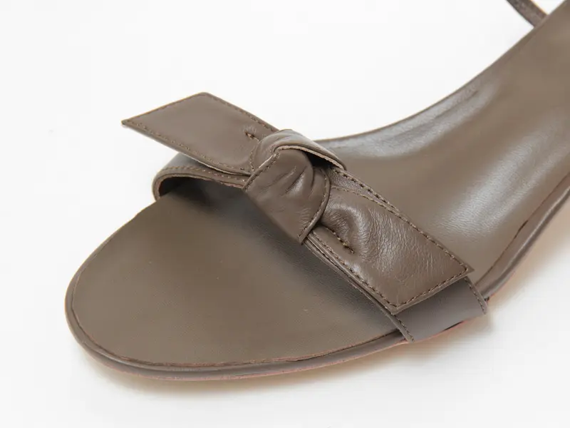 甲のリボンは、あえてラフに結ばれたデザインが魅力。甘さを抑えたナチュラルなディテールで、カジュアルなスタイルにも溶け込みます。涼しげなオープントゥ仕様が程よい抜け感をプラスし、足元を軽やかに演出します。