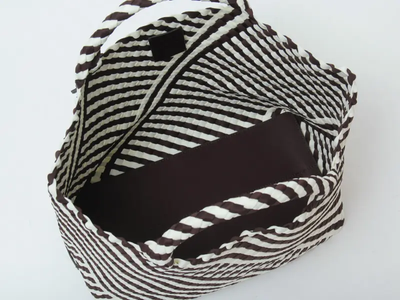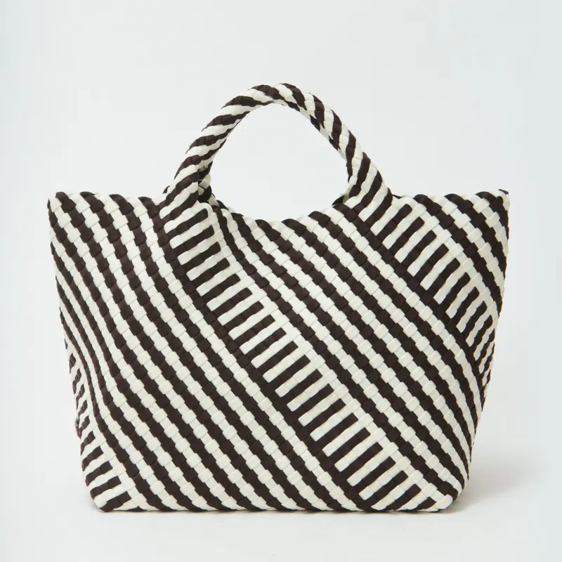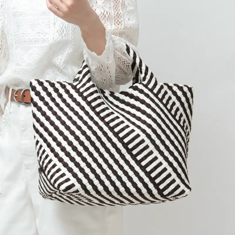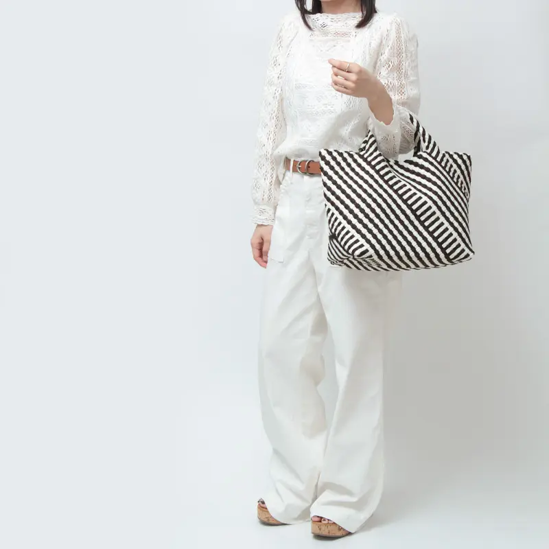 軽量で耐久性に優れた弾力のある高密度フォーム素材を使用したNY発のバッグブランド「NAGHEDI(ナゲティ)」。 2色使ったメッシュデザインのストライプ柄がスタイリングにアクセントを効かせてくれます。A4サイズがゆったり収まる大容量サイズで、 お仕事からデイリーまで幅広く活躍してくれるトートバッグです。
