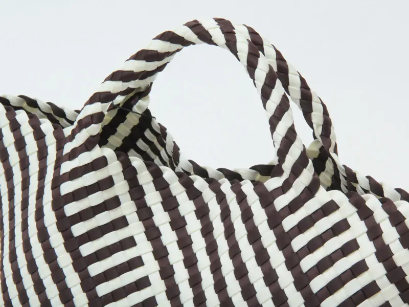 手持ちや腕にかけてバランスよく持てるトートバック。継ぎ目なく編まれたハンドルは、職人の技が光る洗練された仕上がりです。使い込むにつれてハンドルは徐々に伸び、優しくフィットしていきます。伸びることを想定し、最初は少し短めに設計されています。