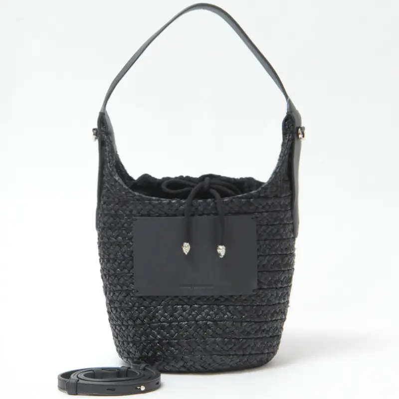 "HELEN KAMINSKI ヘレンカミンスキー"のシグネチャー素材、ラフィアを編み上げたホーボースタイルの「Nisida Bucket」。縦長シルエットがすっきりとした印象を与え、リアルレザーを組み合わせることで、上品で大人っぽい高級感のある佇まいに仕上がっています。斜めがけできるショルダーストラップ付きで、実用性も兼ね備えたデザインです。