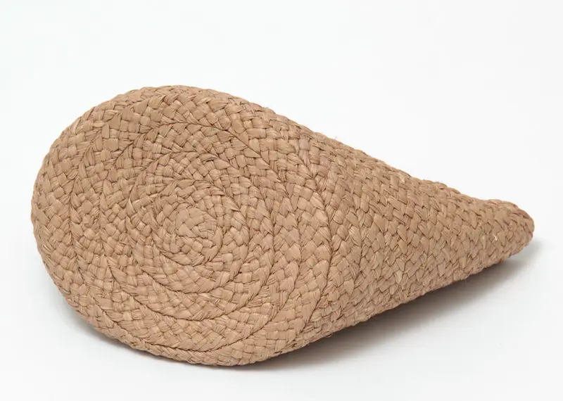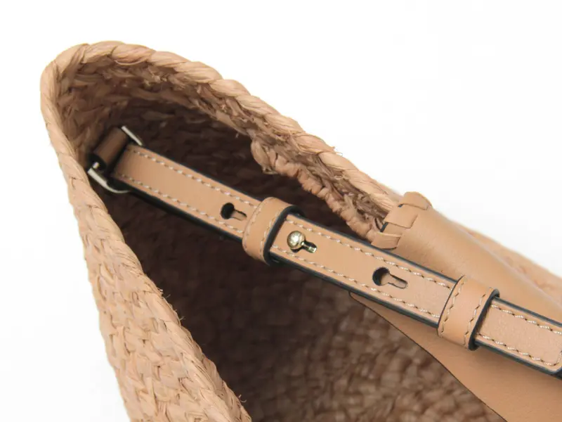 最良質のマダガスカル島の天然素材“ラフィア”を熟練した職人の手作業によって編み上げられたワイドブレードを用いており、LWG 認定のレザートリムで仕上げられています。ラフィア自体がある程度の油分を含んでいるので、とても柔軟性に優れており、時を重ねるごとに柔らかくしなやかになるのが特徴です。