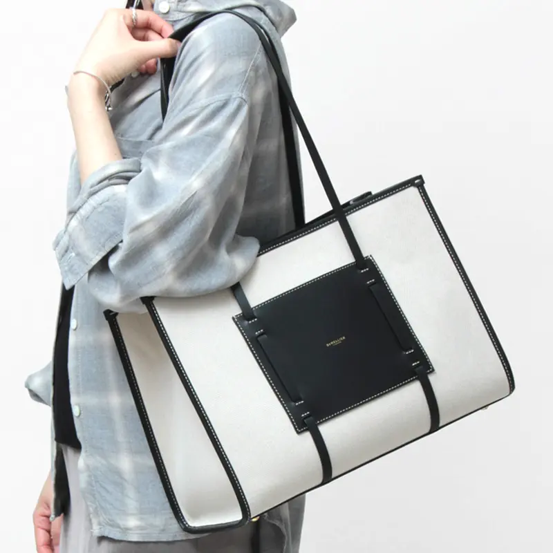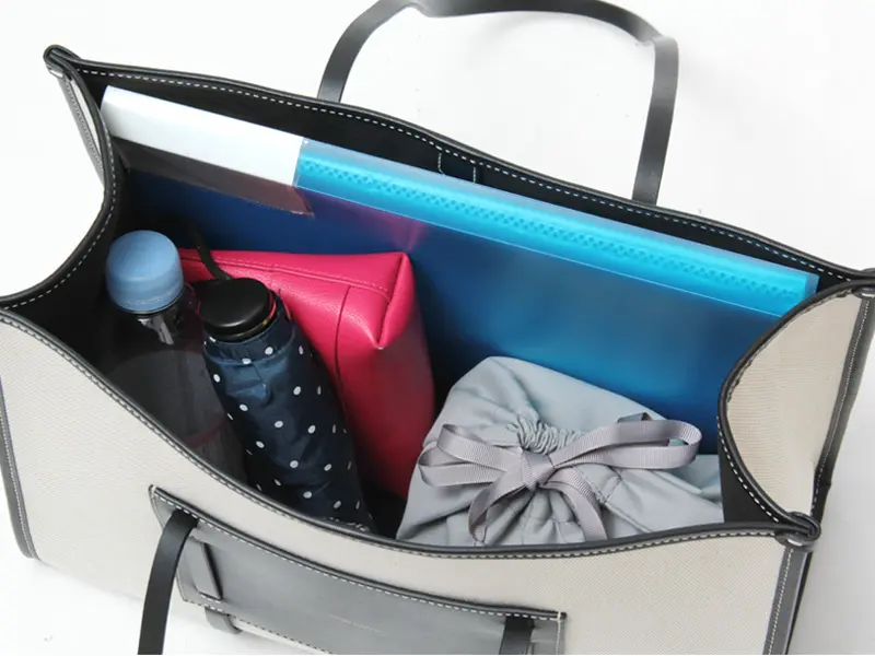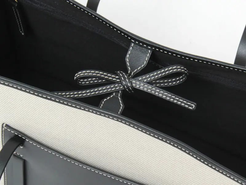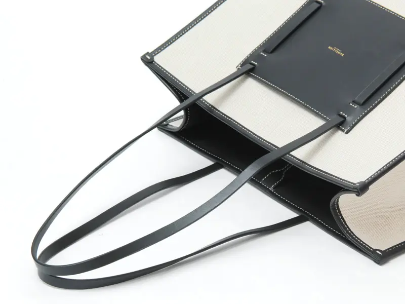 レザーのハンドルはゆったり肩がけでき、女性の手にしっくりと収まる程よい細さで、耐久性にも優れた持ち心地の良いハンドル。ナチュラルなキャンバス地に、ブラックレザーのアクセントになり、通勤のきちんと感を崩すことなく、装いを格上げしてくれます。