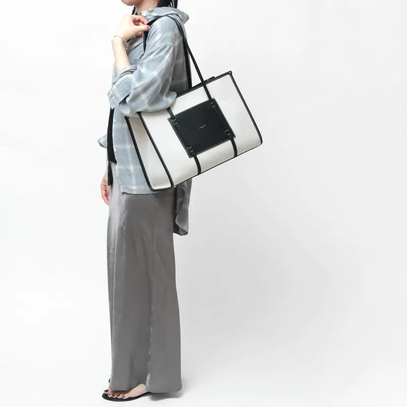 イタリアの伝統技術で丁寧に織り上げた、上質なオーガニックコットンと柔らかく滑らかなスムースレザーを使用。バイカラーのコントラストが美しく、上質な素材感が毎日のコーディネートを格上げしてくれるます。
