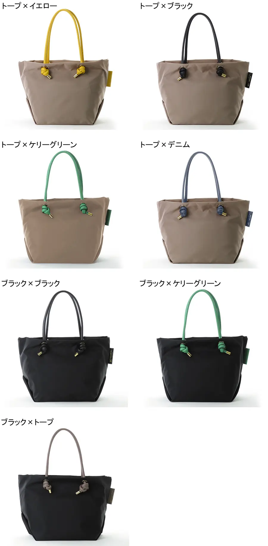 VIOLAd'ORO ヴィオラドーロ BIANCA  ノットハンドル ナイロン トートバッグ (M) トープ×ケリーグリーン