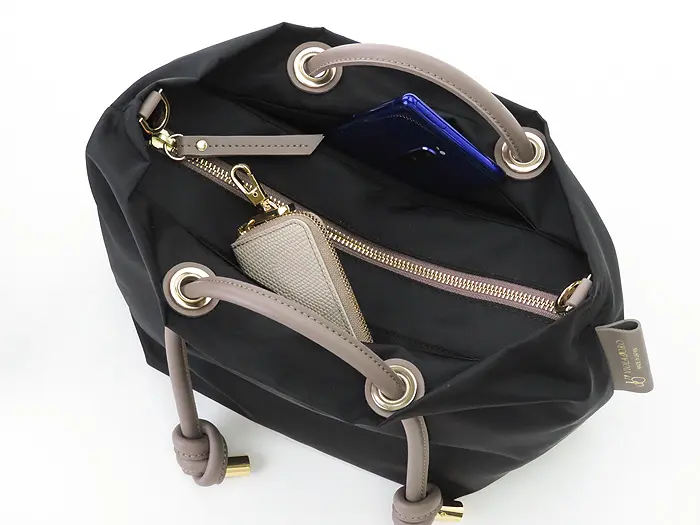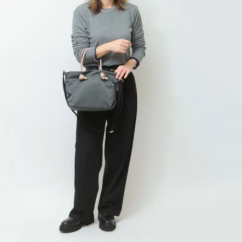 VIOLAd'ORO ヴィオラドーロ BIANCA ノットハンドル ナイロン 2way トート(S) V-2174 チャコール/ピンクグレー