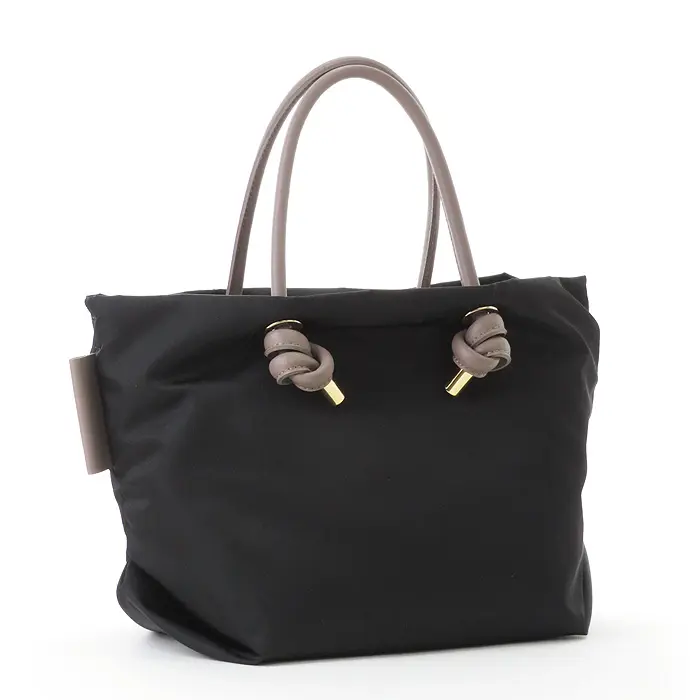 VIOLAd'ORO ヴィオラドーロ BIANCA ノットハンドル ナイロン 2way トート(S) V-2174 ブラック×トープ