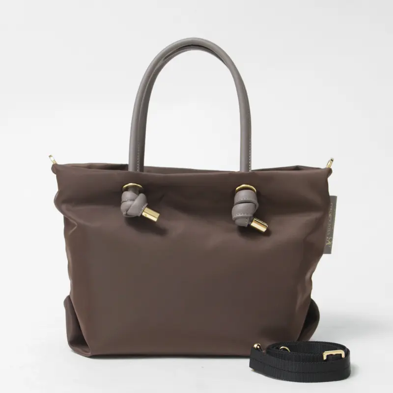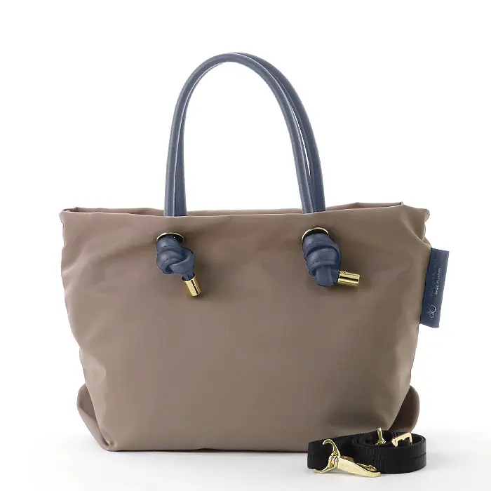 VIOLAd'ORO ヴィオラドーロ BIANCA ノットハンドル ナイロン 2way トートバッグ(S) D.ブラウン/トープ