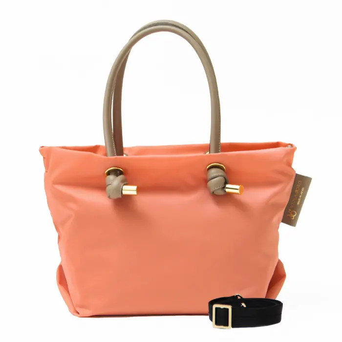VIOLAd'ORO ヴィオラドーロ BIANCA ノットハンドル ナイロン 2way トートバッグ(S) コーラル/L.トープ