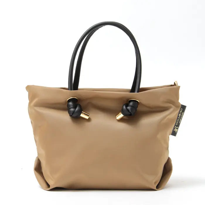 VIOLAd'ORO ヴィオラドーロ BIANCA ノットハンドル ナイロン 2way トートバッグ(S) トープ×ブラック