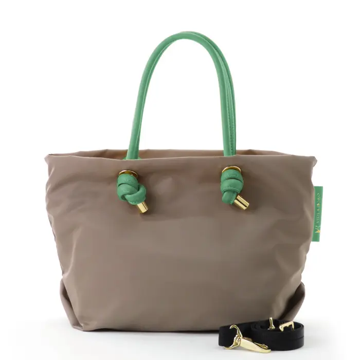 VIOLAd'ORO ヴィオラドーロ BIANCA ノットハンドル ナイロン 2way トートバッグ(S) トープ×Kグリーン