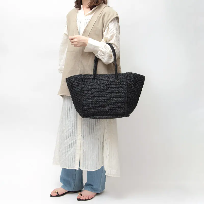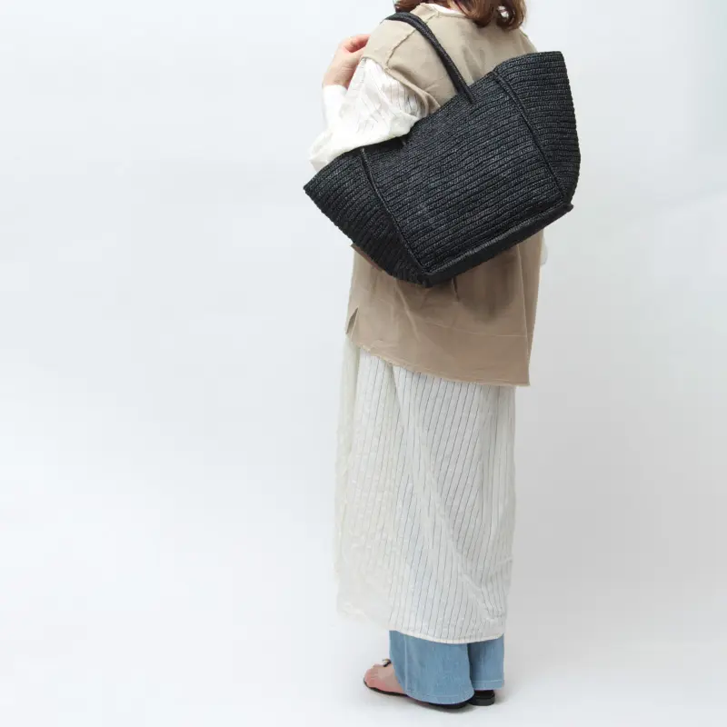 最高品質のラフィアを100%使用し、丁寧に仕立てられています。カジュアルな装いにも、きれいめスタイルにもすっと馴染む、毎日に寄り添う夏の頼れる相棒バッグです。
