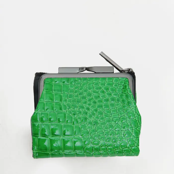 POMTATA ポンタタ CORO クロコ型押し エナメル がま口 二つ折り財布 グリーン
