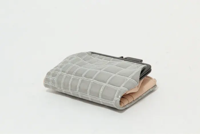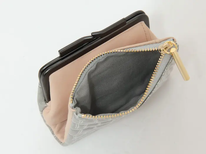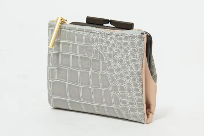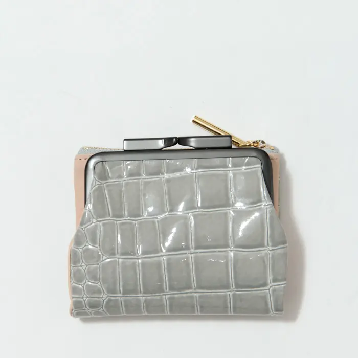 POMTATA ポンタタ CORO クロコ型押し エナメル がま口 二つ折り財布 グレー