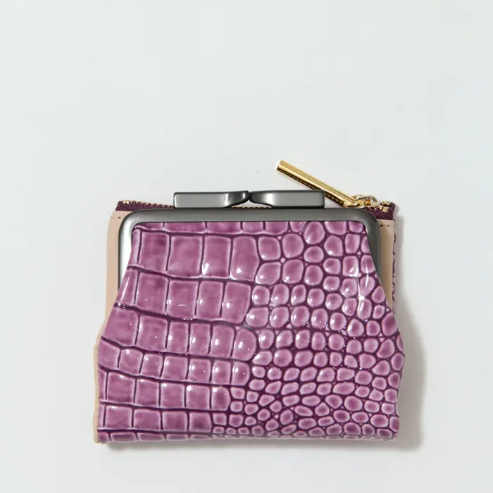 POMTATA ポンタタ CORO クロコ型押し エナメル がま口 二つ折り財布 パープル