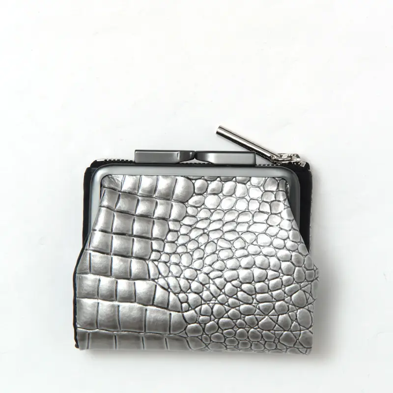 POMTATA ポンタタ CORO クロコ型押し エナメル がま口 二つ折り財布 シルバー