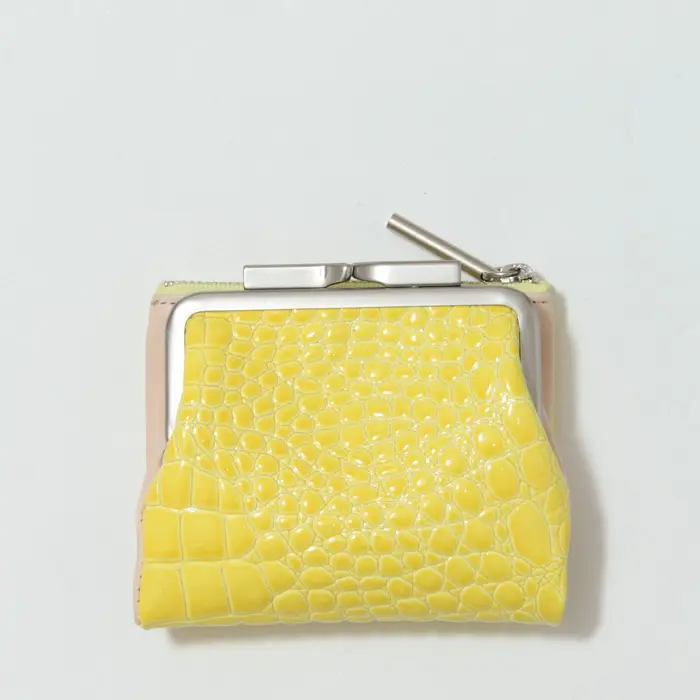 POMTATA ポンタタ CORO クロコ型押し エナメル がま口 二つ折り財布 イエロー