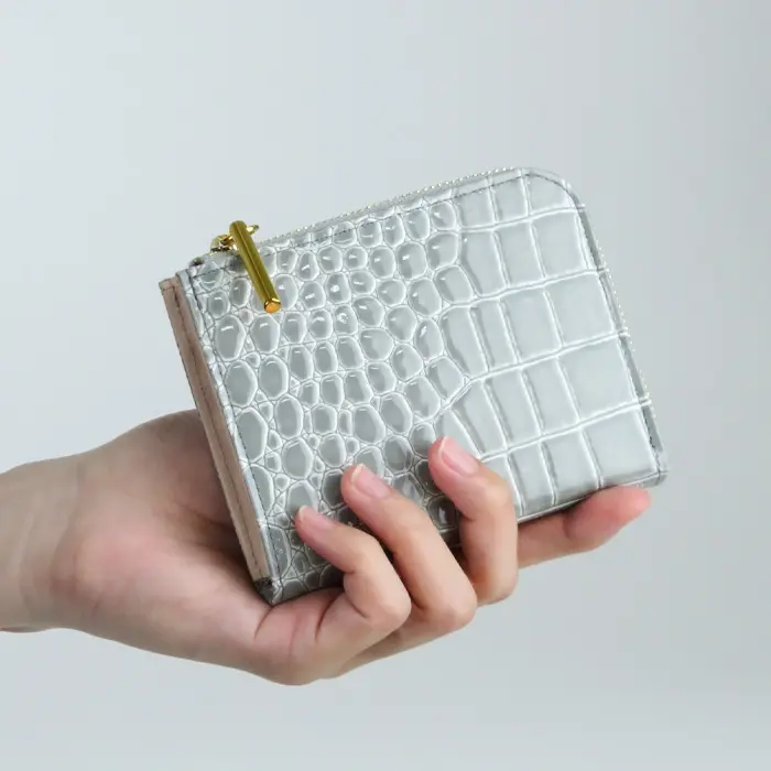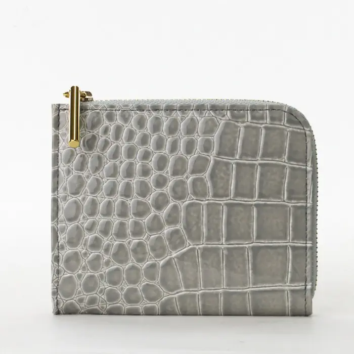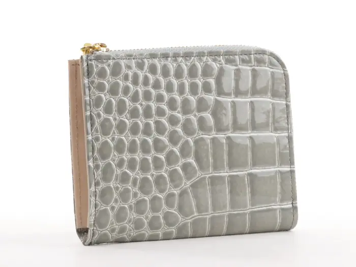 POMTATA ポンタタ CORO クロコ型押し エナメル L字ファスナー ミニ財布 グレー