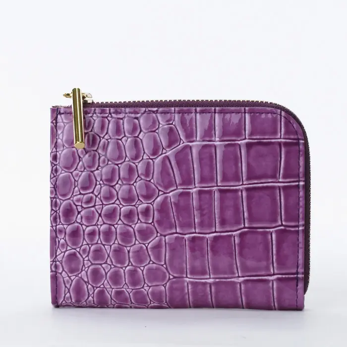 POMTATA ポンタタ CORO クロコ型押し エナメル L字ファスナー ミニ財布 パープル