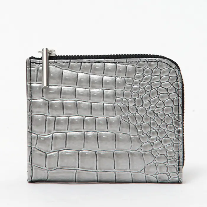 POMTATA ポンタタ CORO クロコ型押し エナメル L字ファスナー ミニ財布 シルバー