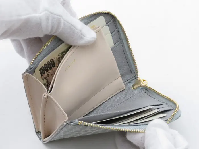 開閉はL字ファスナーデザイン。お札、小銭、カード収納6ヵ所とすべてが一目瞭然なのが、このお財布の最大の魅力。開閉もしっかり開き、財布の中身が見やすく取り出しやすいので、支払いもスムーズに行えます。