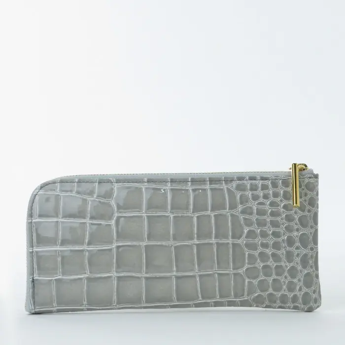 POMTATA ポンタタ CORO クロコ型押し エナメル L字ファスナー 長財布 グレー
