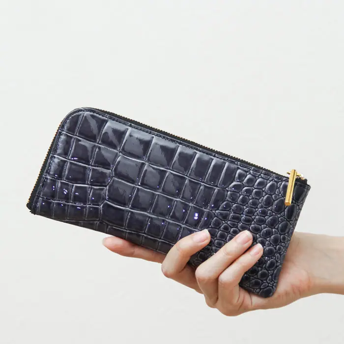 POMTATA ポンタタ / CORO クロコ型押し エナメル L字ファスナー 長財布