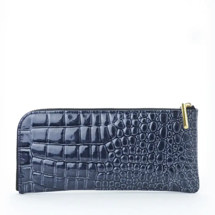 POMTATA ポンタタ CORO クロコ型押し エナメル L字ファスナー 長財布 ネイビー